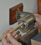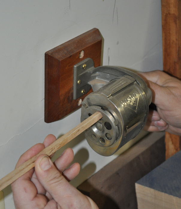 Step three involves "sharpening" the stock. Just like a pencil. In fact I use a pencil sharpener. Sharpening makes it easier to start the stock through the Dowel Plate and eventually into your project.