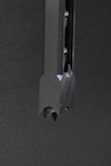 Next, I set the depth of the mortiser’s cut. Begin this process by marking the desired depth on the stock’s end. If I have “extra” stock depth, I’ll set the bottom of the hollow chisel to this mark. Then the auger, which extends past this point due to the gap, will make the mortise a little deeper than required, how much being dependent on the size of the gap, and will allow me to possibly skip cleaning up the bottom of the mortise later. However, if I don’t have extra depth material, I’ll set the bottom of the auger to my depth layout line and plan on cleaning up the bottom of the mortise later.