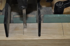 Adjusting the fence parallel to the chisel is important to ensure your mortise wall is parallel to the side of your stock along the mortise. I use bar stock to both ensure the parallelism of the chisel and fence and to set the fence at the appropriate location for my joint. This technique decreases layout time, since I only have to mark a start and stop line on the stock for each mortise I’m cutting.