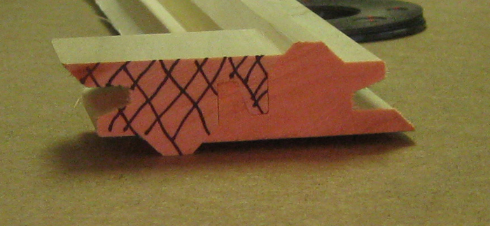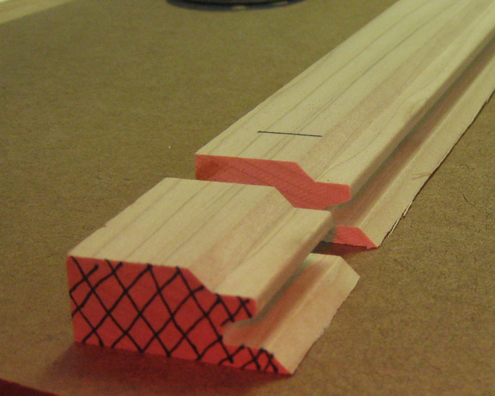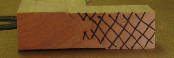 To test the initial set up, cut a piece of stock off the end of the test piece. Flip it around, and over, than mate the locking miter joints. If the bit height is properly set the two pieces will be flush long Line “A” illustrated in photo 7. Otherwise you will need to adjust the bit height and make test cuts until you have found the correct set up.