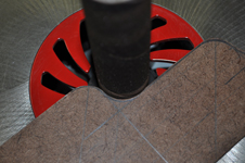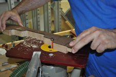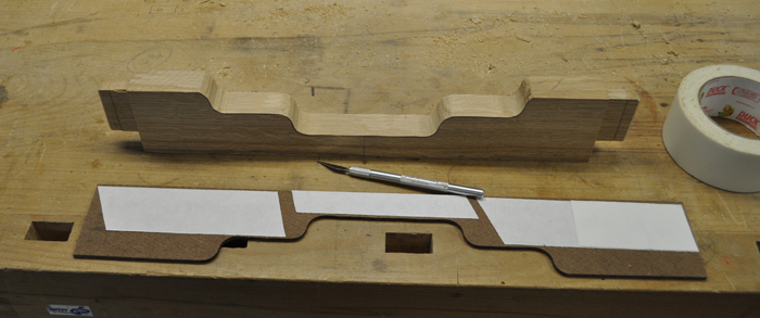 In this step we’re transferring the template’s pattern to the stock in preparation for rough cutting on a bandsaw. The key to success is registering the template in a fashion that can be duplicated later in the Using Carpet tape step.
